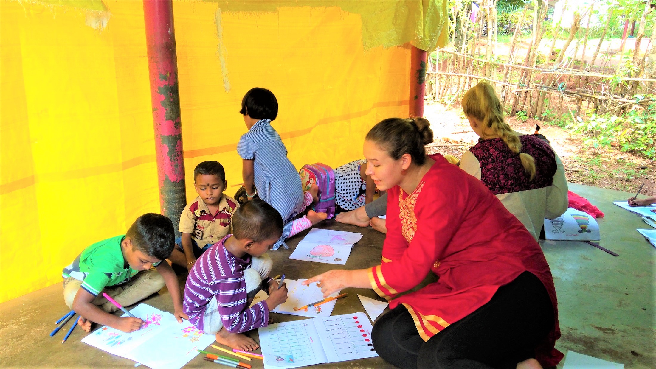 Volunteers will teach young children through interactive and creative activities to enhance their cognitive skills, following kindergarten-level teaching standards. They will support Anganwadis in providing pre-school education and promoting health, hygiene, and nutrition awareness in the community. Volunteers are encouraged to introduce new creative activities and ensure a caring, nurturing environment where children feel loved and supported every day.