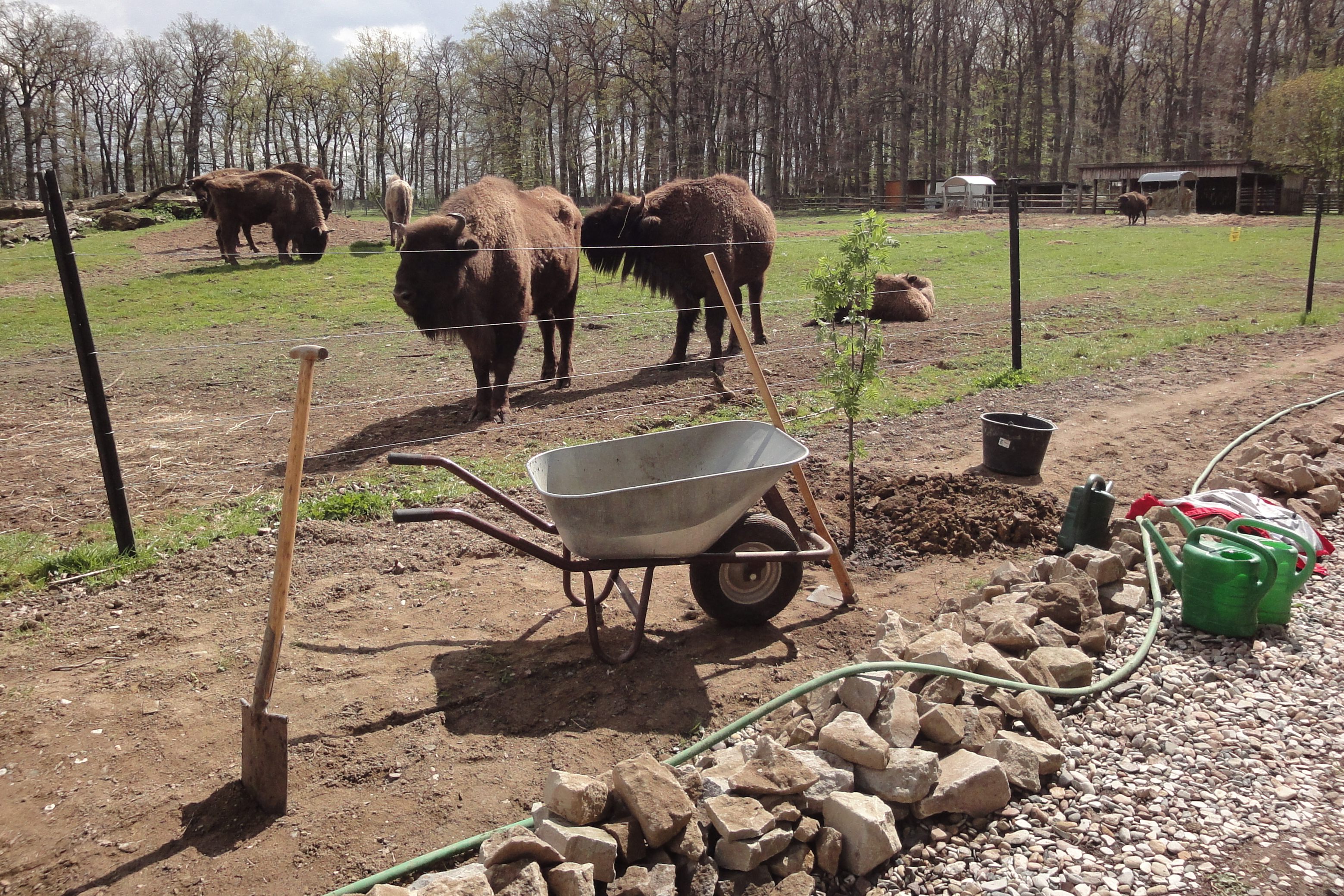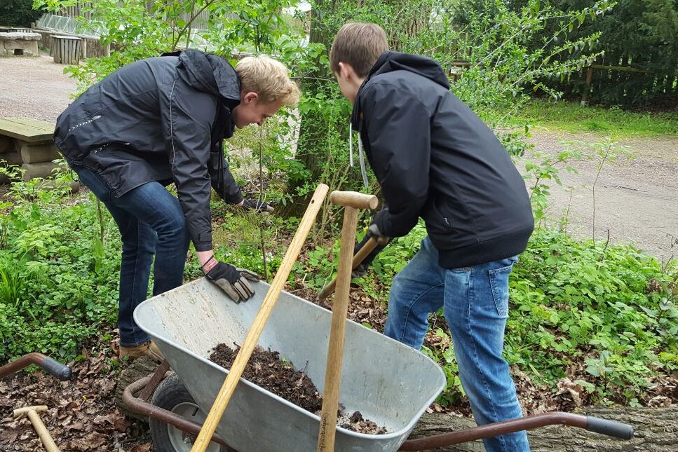 The bison enclosure in Springe is one of the most popular destinations in the Hanover region. The main purpose of the wildlife park is to ensure the survival of endangered species, such as bison, through breeding programmes. The Forest Education Centre runs sustainable educational courses for school classes of all ages there. The programme ranges from workshops, animal observation, learning stations, exploration tours, activity days and project weeks to holiday pass activities and children's birthday parties. Your group supports the staff of the Education Centre in various environmental and nature conservation activities on the premises. The main task is to remove fast-growing plants such as ivy and blackberries, which overgrow everything. This creates light and space for more plant diversity. You will help to remove poisonous plants such as belladonna and clear ivy and blackberry vines from part of the historic Saupark wall, which at 16.3 km is the longest architectural monument in Lower Saxony. Climate change is also clearly noticeable in the bison enclosure. To prevent the soil from drying out too much, ‘wood islands’ made of dead branches are being created under the large trees. You will also be supporting the wildlife park team with this task.