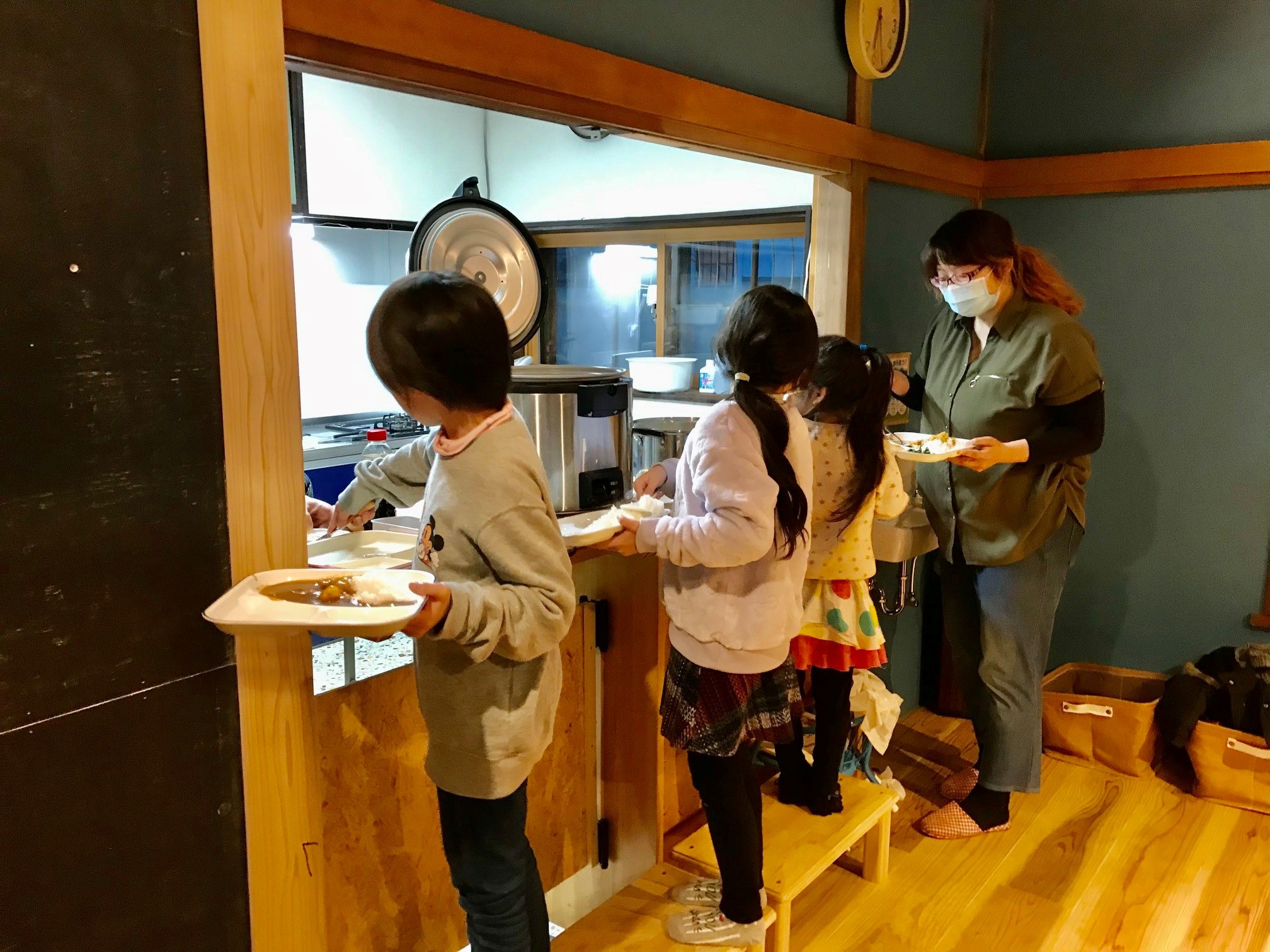 1) Supporting children's activities at affiliated kindergartens. 2) Learning support and cooking assistance at the Kodomo shokudo(The place where kids can eat for free or at a low cost with other people.). Specifically, homework and subject learning is provided to about 15 primary and junior high school students. They also assist in cooking dinner together with the staff. 3) Supporting for nature activities for kids(playing outside, cooking meals, preparing activities, etc.). Especially on weekends and during long holidays.