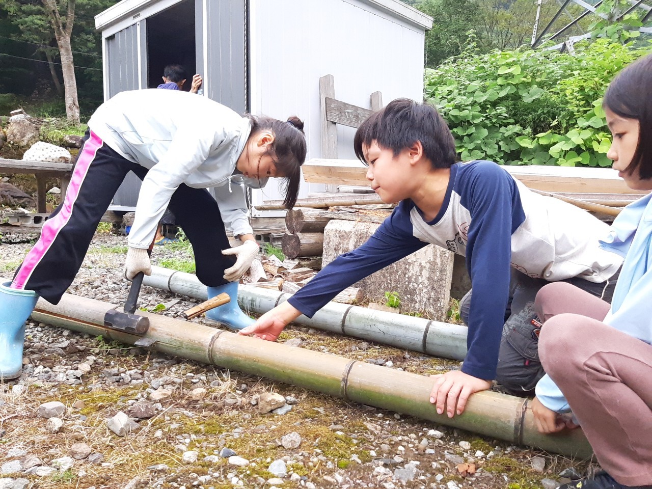 Volunteer will help to 1) maintain the old houses by cleaning up, drying many sleeping mats, etc., 2) do farming (weeding in the green tea field that was abandon, cultivating, planting and harvesting potatoes) and 3) do other community work (e.g., construction, chopping woods, trail maintenance). Children sometimes work with adults and other times play in the nature (river, etc.) by the assistance of some parents (by turns) and supporting vols.