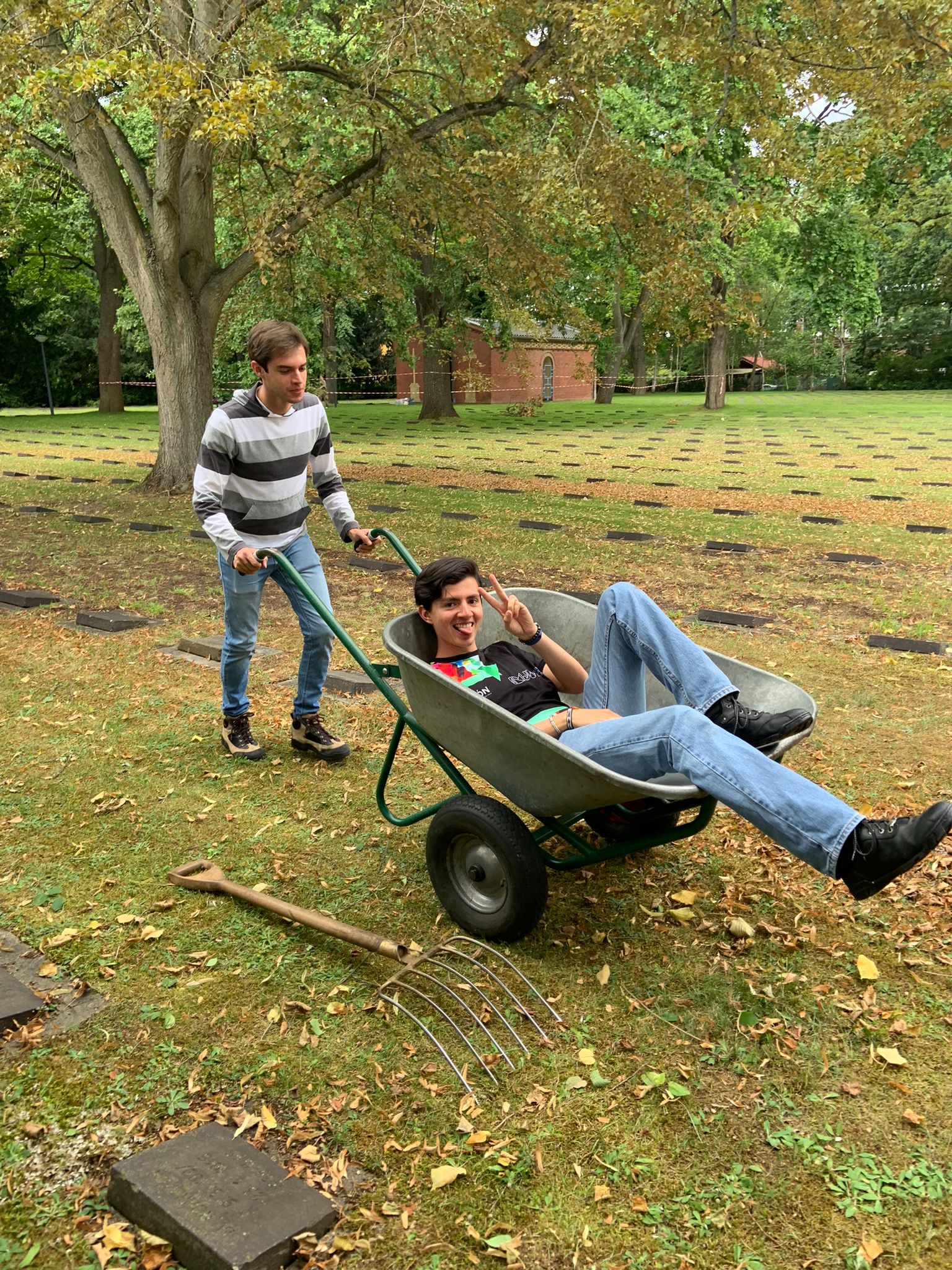 Berlin is known for its culture, energy and offering great adventures. In this project, you will also experience some of the quieter sides of the city that only a few people get to see. You are actively engaged in the preservation of the culture of remembrance. Specifically, you are dedicated to the repair and maintenance of graves of victims of war and tyranny (German and non-German soldiers and civilians) at the state-owned cemetery in Berlin-Reinickendorf / the Reinickendorf war gravesite. This workcamp is an opportunity to get to know the heritage of the past and learn more about how to promote a culture of peace through memorialisation and remembrance. Your work includes very practical tasks like cleaning the graves and grave marker frames. The maintenance of the grounds also includes the seeding of the lawn and the pruning of woody plants such as bushes, shrubs and trees.