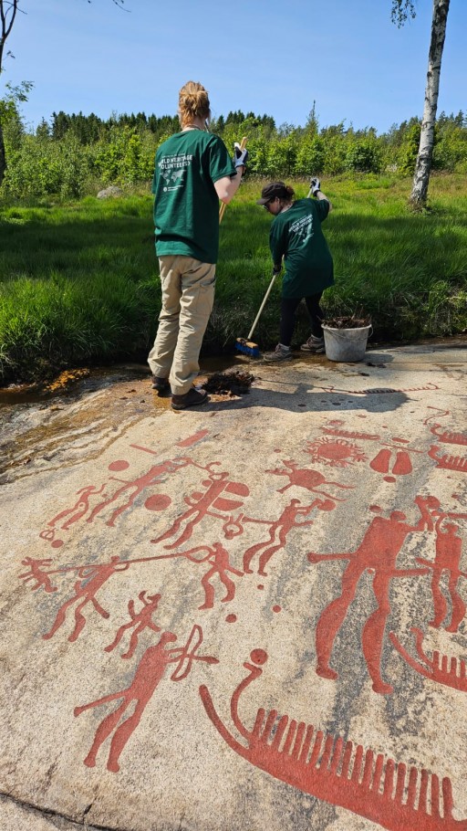 The volunteers will help with the green area maintenance in the bronze age farm and around the rock carvings. The group should be ready for hands-on activities and working outdoors regardless of the weather. The volunteers also assist in preparing for the summer solstice event, which is held during the camp. The midsummer preparations include picking flowers, dressing the maypole, and talking to our visitors about the event.