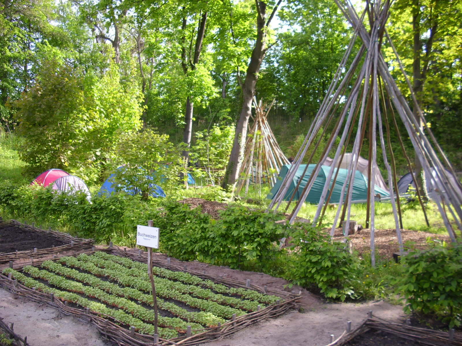 You will sleep in small groups in tipis or in your own tents on the outdoor grounds of atz Welzow. Showers and toilets are located in a sanitary container. The kitchen is in the main building. There are lockers for valuables. You’ll also enjoy beautiful birdsong in the morning for free.