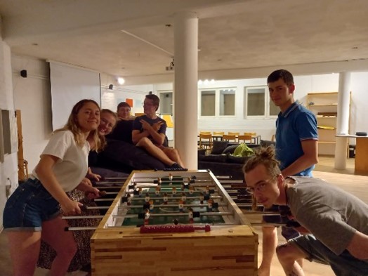 In the youth rooms of St Stephen's parish in the Detmerode district of Wolfsburg. Two bedrooms, a large common room and the kitchen are available for you to use. Table football, table tennis, billiards. Barbecue area. You sleep on camp beds. You can walk to the shops on the market square in just five minutes.