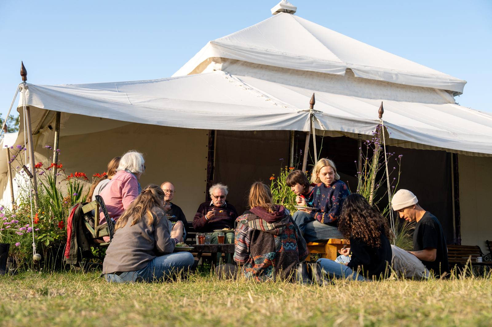 Please note: when you first arrive, the field will be mostly empty except for essential facilities, as the site is built collectively during the first weeks. The nearest shop and post office are approximately 2 miles away.
