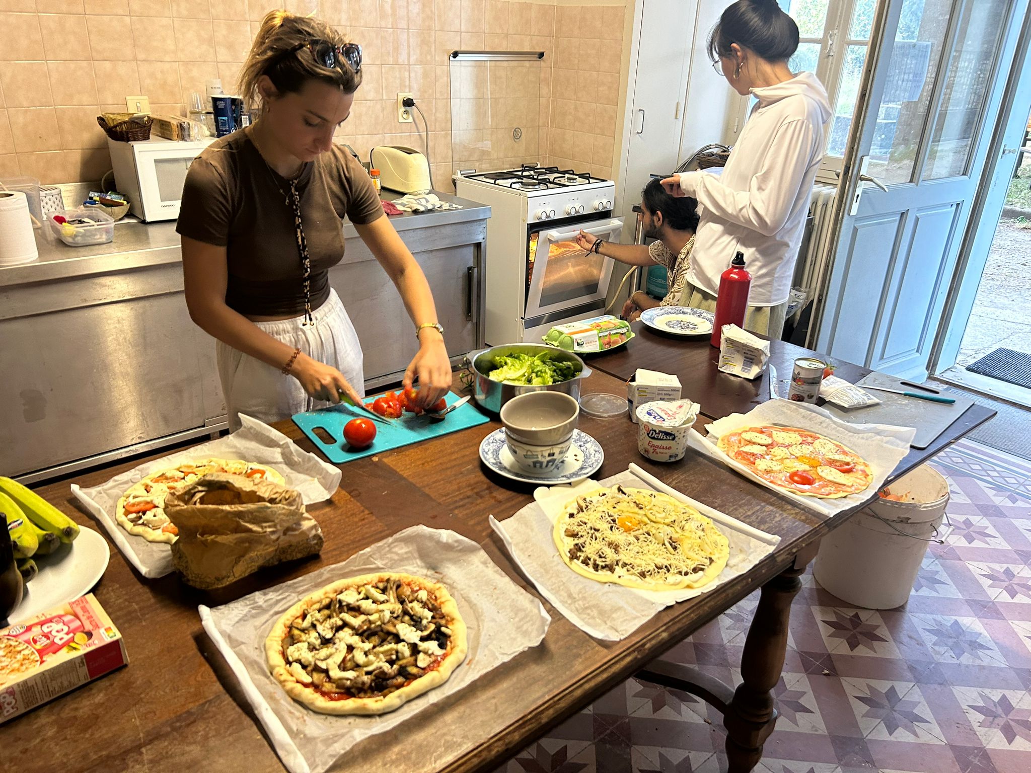 A fully equipped kitchen is available for use, overlooking a charming park. Meals will be prepared collectively, with everyone taking turns cooking, cleaning, and organizing daily activities. Ingredients will be sourced locally, with an emphasis on seasonal and short supply chain products. We promote a vegetarian diet while respecting individual dietary needs and exploring local culinary traditions together.